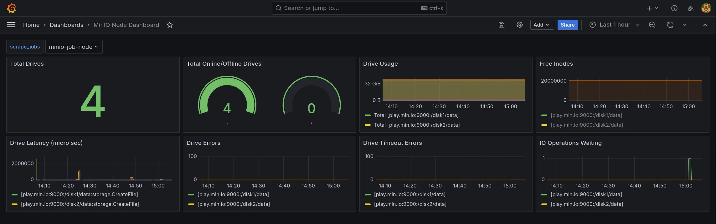 - https://grafana.com/grafana/dashboards/13502-minio-dashboard/